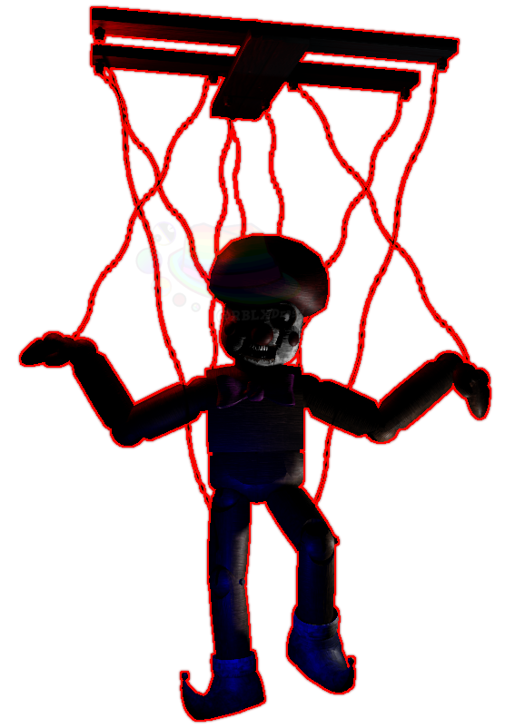 Conundrum is a fortune telling clown animatronic, designed to look like a wooden doll.Conundrum has been locked up in a storage facility after being trashed. Soon he gained sentience through unknown means and met The Overseer. Overseer then gave Conundrum some of his power. Giving Conundrum the ability to manipulate the fabrics of reality. He uses his newfound powers to distort and turn the storage facility he's contained within into a wacky funhouse under his rule.Conundrum has made his own lackeys in the form of Fog Clowns. He is constantly attempting to make more Fog Clowns as the current clowns continue to make new bodies for victims to inhabit inside of his Funhouse.Conundrum looks for mentally unstable and vulnerable people as victims, manipulating them to follow him into his funhouse to play a set of games. He entices his victims with the promise that he will grant them any wish they want, if they can beat the games.Once the victim agrees he warps them to his twisted version of the storage facility and forces them into games. These games can be anything from physical challenges like obstacle courses, maze running, and doing a set of tasks under specific conditions. Most games have a time limit which are set and counted down by Overseer himself.The majority of challenges Conundrum makes the victim play are based on personal problems the victim faces in their life. Conundrum usually is keen to see if the victim notices the connection or just keeps blindly playing for the wish he promised.If the victim completes all the challenges and does well in them, Conundrum will "let them go" to their house and their wish seemingly granted. Only for the victim to suddenly feel ill and pass out. The victim afterwards killed, has there eyes, teeth, and soul harvested and put into an empty Fog Clown husk for them to possess for all eternity.Although Conundrum is mostly sinister and manipulative, he has sometimes shown hints that he does not enjoy what he does that much. That or he has occasionally sat alone in his office and reflected on everything, thinking if his path is worth continuing. These moments are fleeting however, as he is usually constantly being monitored by a certain someoneConundrum sometimes has a change of heart and will actually set his victims free after they complete the challenges and actually help improve their life instead of turning them into a fog clown, but it's uncommon and usually when Overseer isn't breathing down his neck.